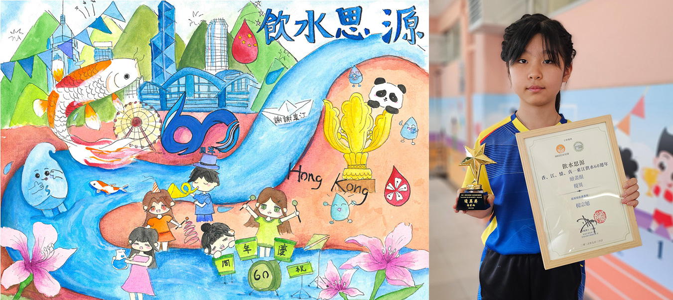 恭賀6C楊宗旭同學參加由「香港社建協會」及「香港河源社團總會」主辦的「飲水思源-香、江、情、真-東江供水60週年」繪畫比賽中榮獲優異獎