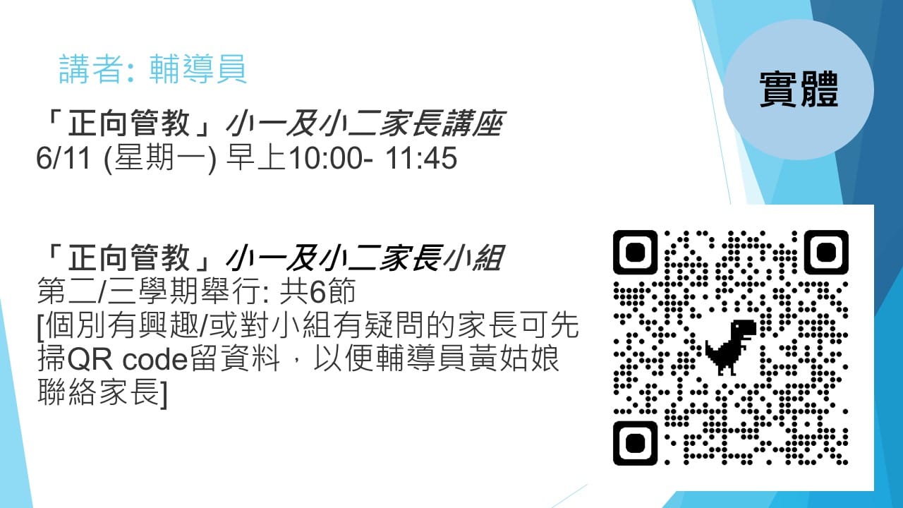 - 舉辦正向家長講座,推展生活中正向教育的能力;