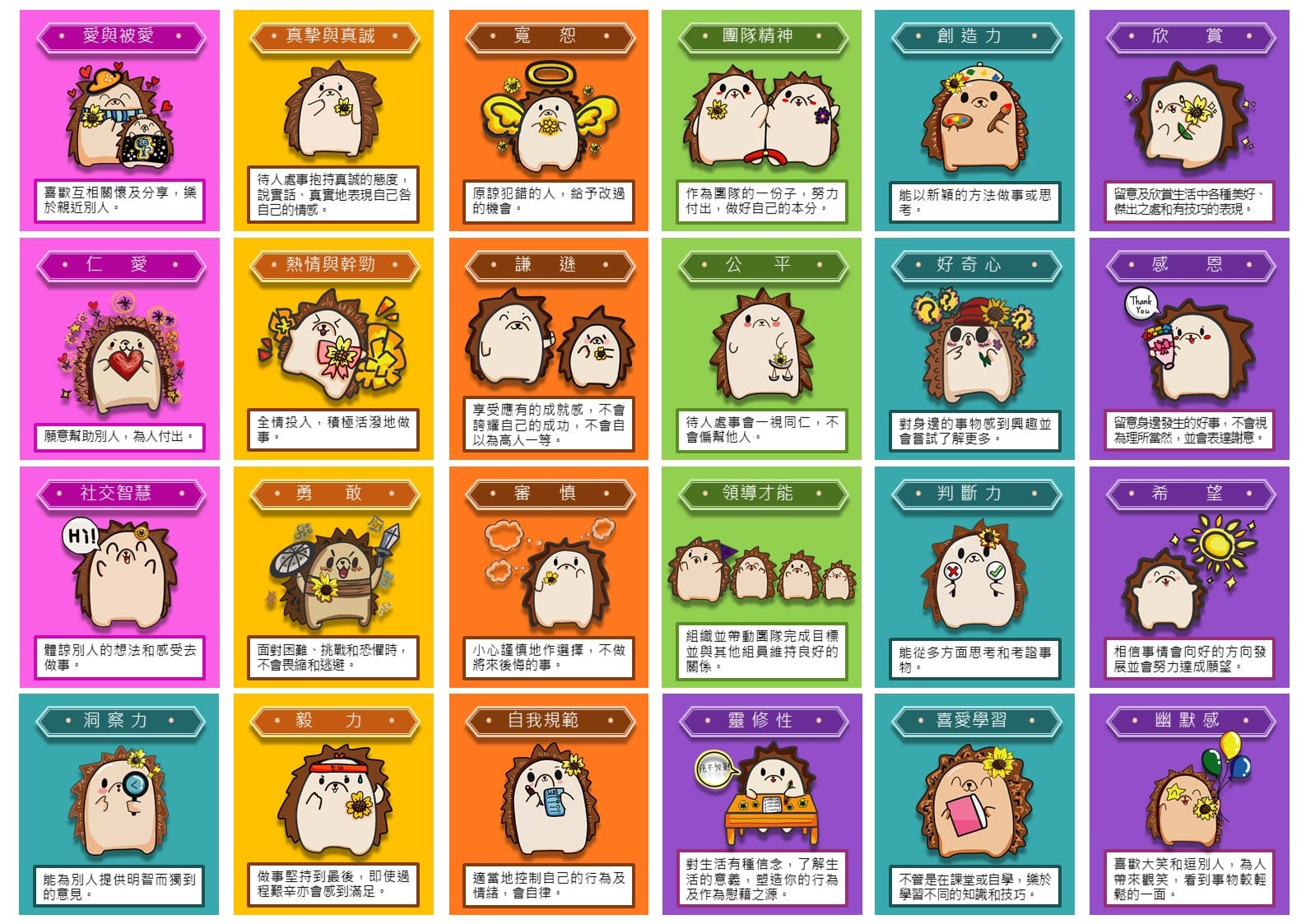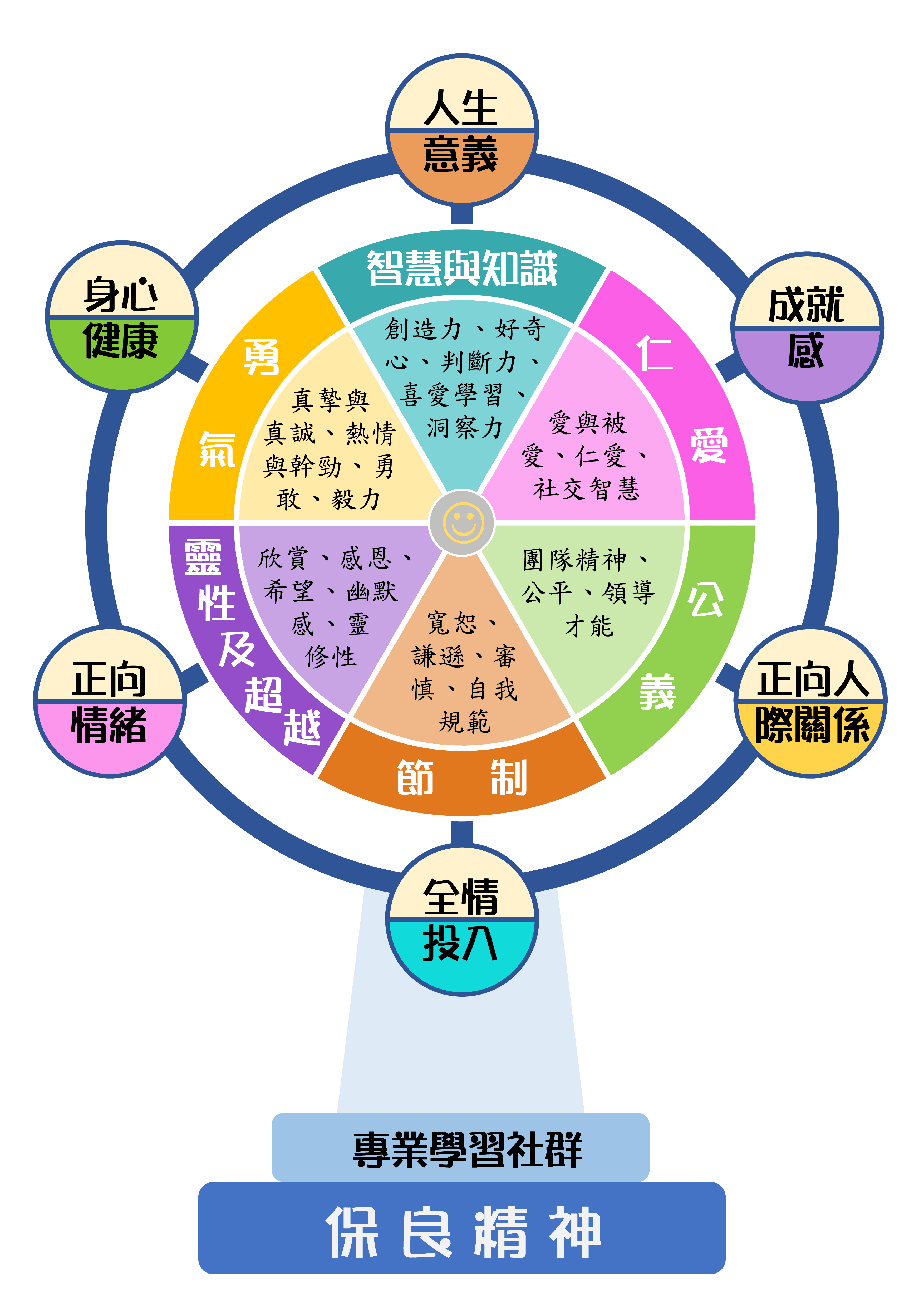 - 於早會、週會及成長課把正向心理學的知識、技能及態度,教導學生;