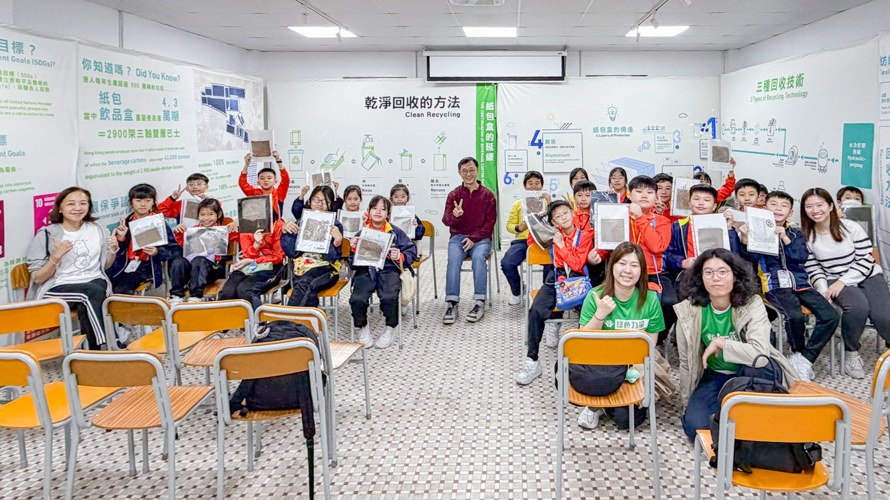 環境保衛隊在12月9日參觀了本港唯一一間紙包飲品盒回收廠——喵坊,認識本地廢物處理過程和回收業的運作