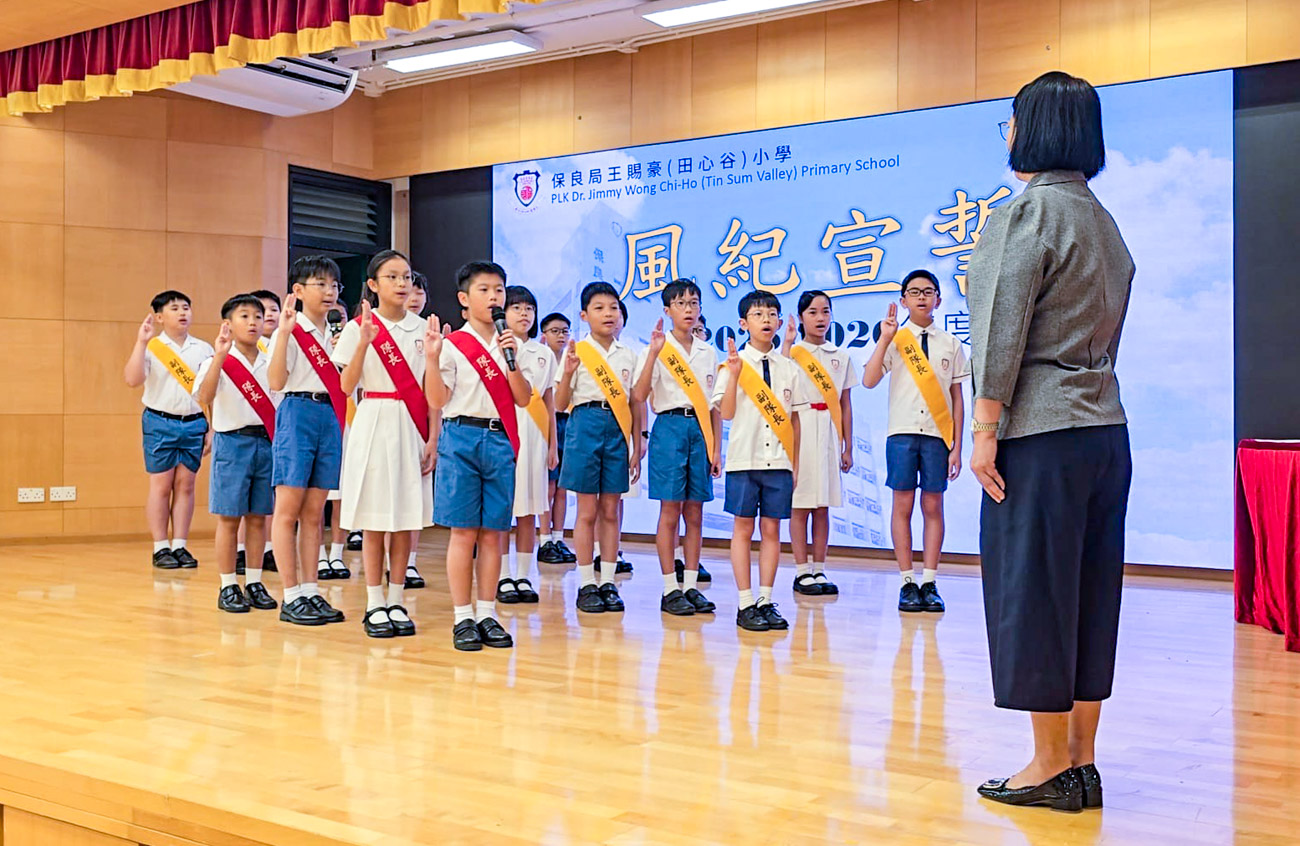 典禮中,全體風紀逐一上台接受潘副校頒發之風紀帶,並在風紀隊長與副隊長的帶領下進行宣誓,標誌着本年度風紀隊正式獲學校委以重任。