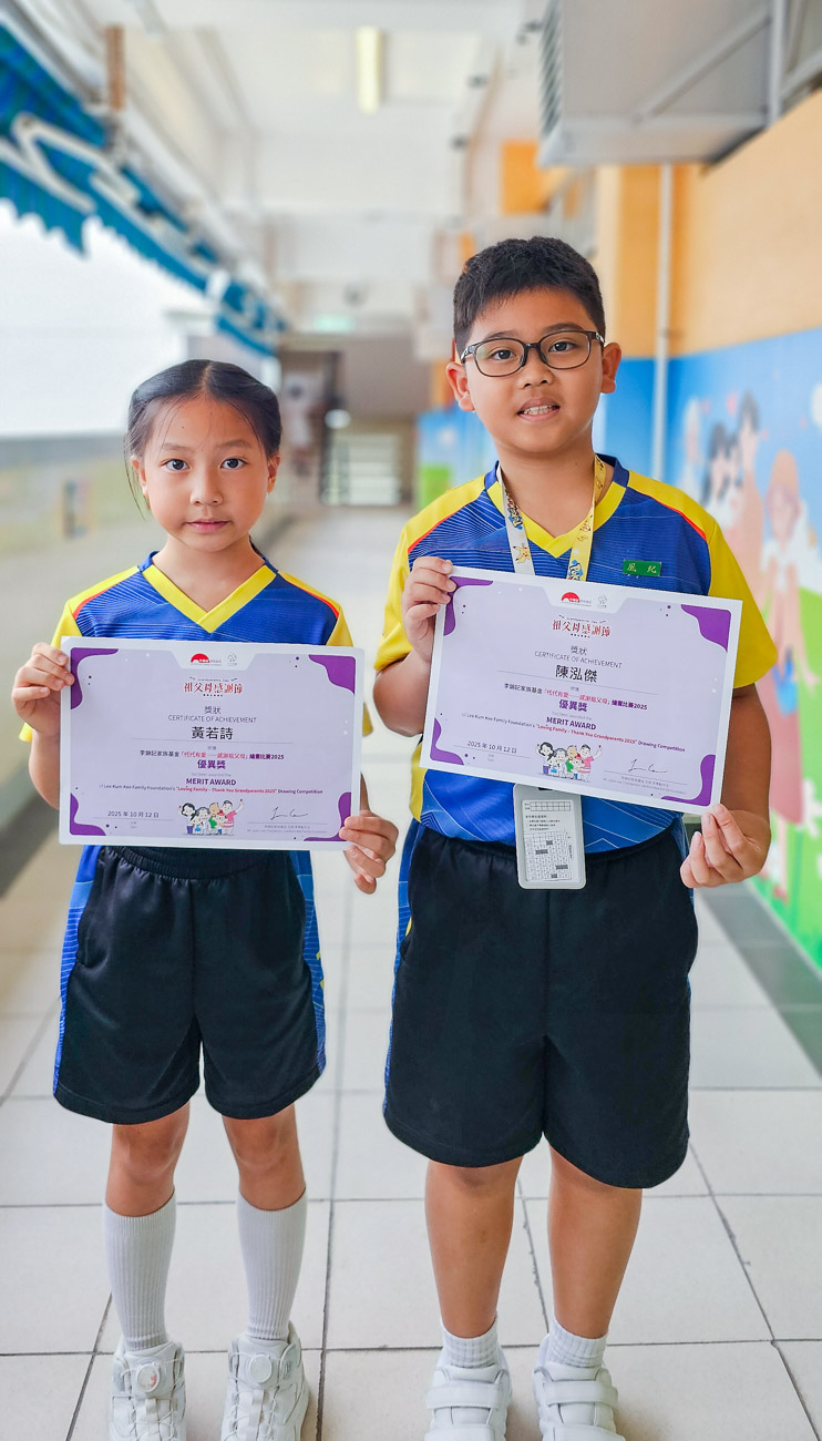 恭賀4A陳泓傑和4B黃若詩同學在李錦記家族基金舉辦的「代代有愛——感謝祖父母」繪畫比賽中脫穎而出,榮獲優異獎!他們的作品展現了對祖父母深厚的感情和創意
